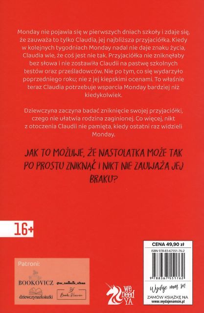 Monday nie przyjdzie to mocna opowieść młodzieżowa o przyjaźni, (...) wytrwałości i konieczności konfrontacji z trudną prawdą. Książka wciąga emocjonalnie, skłania do refleksji, a jednocześnie dostarcza dreszczyku emocji.