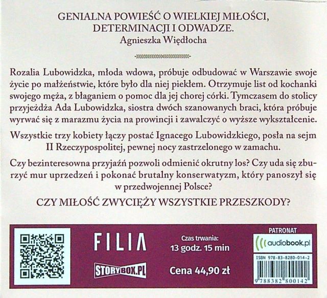 Siła kobiet / Barbara Wysoczańska ; czyta Agata Kulesza. - Poznań : Wydawnictwo Filia ; Piaseczno : Heraclon International - Storybox.pl, 2021. - 1 płyta CD (13 godz. 15 min) : zapis cyfrowy, stereo. ; 12 cm.