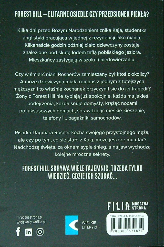 Żony z Forest Hill / Sonia Rosa. - Wydanie I w tym formacie. - Poznań : Wydawnictwo Filia - Grupa Wydawnicza Filia sp. z o.o., 2023. - 373, [1] strona ; 24 cm.