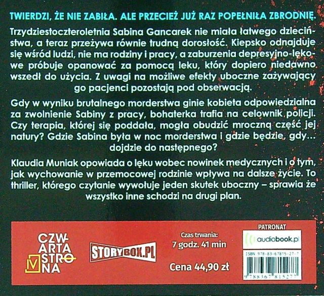 Książka bardzo ciekawa, chociaż temat ciężki. Walka samemu ze sobą, po tragedi która trwała od zawsze. Czy leki pomagają, czy wręcz przeciwnie? Czy można ufać policji ,lekarzom ,sobie ? Odpowiedź znajdziecie w książce, którą dobrze i szybko się czyta. Polecam.