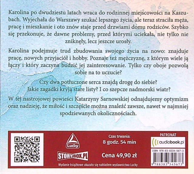 Pocałunki wiatru / Katarzyna Sarnowska ; Anna Krypczyk. - Radom : Wydawnictwo Lucky ; Piaseczno : Heraclon International - Storybox.pl, 2023. - 1 płyta audio (CD) (8 godz. 54 min) : zapis cyfrowy, stereo ; 12 cm.