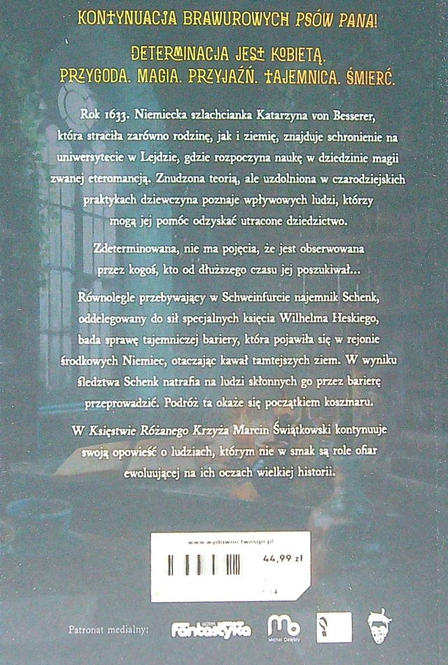 Księstwo Różanego Krzyża / Marcin Świątkowski. - Wydanie I. - Kraków : Wydawnictwo SQN, 2024. - 324, [3] strony ; 21 cm.