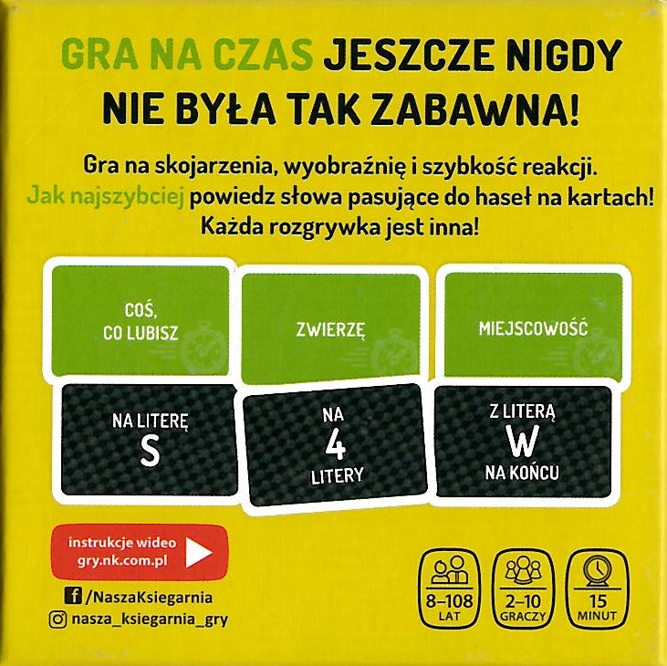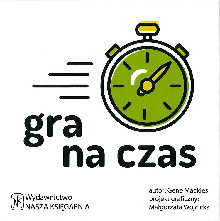 Gra na czas / Gene Mackles ; projekt graficzny okładki Małgorzata Wójcicka. - Warszawa : Wydawnictwo Nasza Księgarnia, 2022. - 1 gra (100 kart) : karton, papier, kolor ; w pudełku 10x10x8 cm + instrukcja (16 stron : ilustracje ; 9 cm).