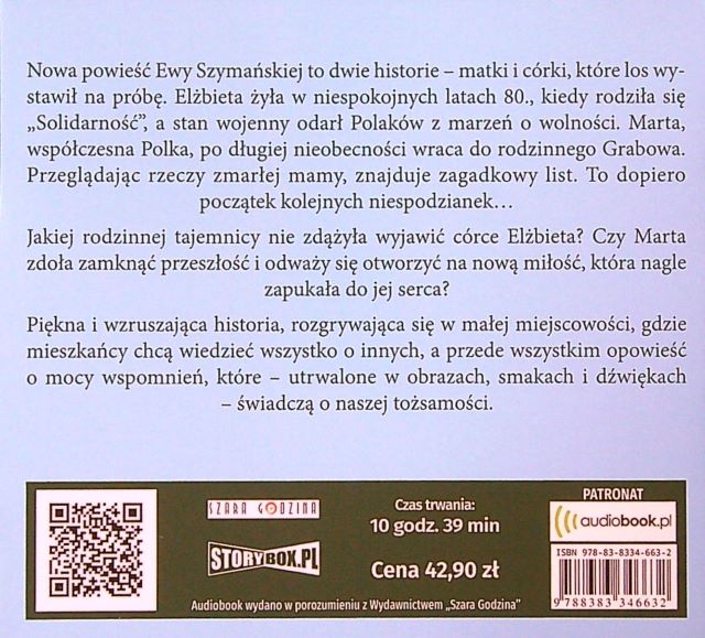 Niedokończony list / Ewa Szymańska ; czyta Lena Schmischeiner. - Piaseczno : Heraclon International - Storybox.pl ; Warszawa : Wydawnictwo Szara Godzina s.c., [2024]. - 1 płyta audio (CD) (10 godz. 39 min) : zapis cyfrowy, stereo. ; 12 cm.