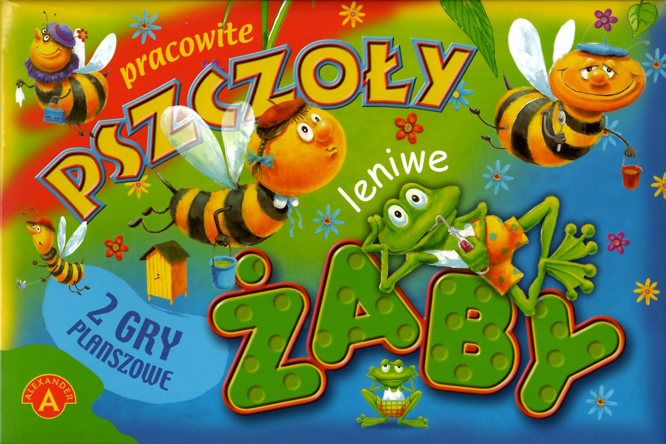Pracowite pszczoły : leniwe żaby. - Chwaszczyno : Alexander, [2017]. - 2 gry (1 dwustronna plansza, 4 pionki ; 1 kostka do gry) : karton, tektura, plastik, kolor ; w pudełku 20x29x4 cm + instrukcja (8 stron : ilustracje ; 22 cm).
