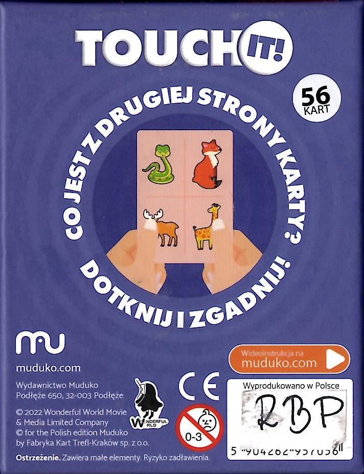 Touch it! : Popkultura /Caterdjian Romain, tłumaczenie Lingua Lab. - Podłęże : Muduko, 2022. - 1 gra (56 kart) : karton, tektura, kolor ; w pudełku 10x12x4 cm + instrukcja (1 karta złożona : ilustracje ; 9 cm).