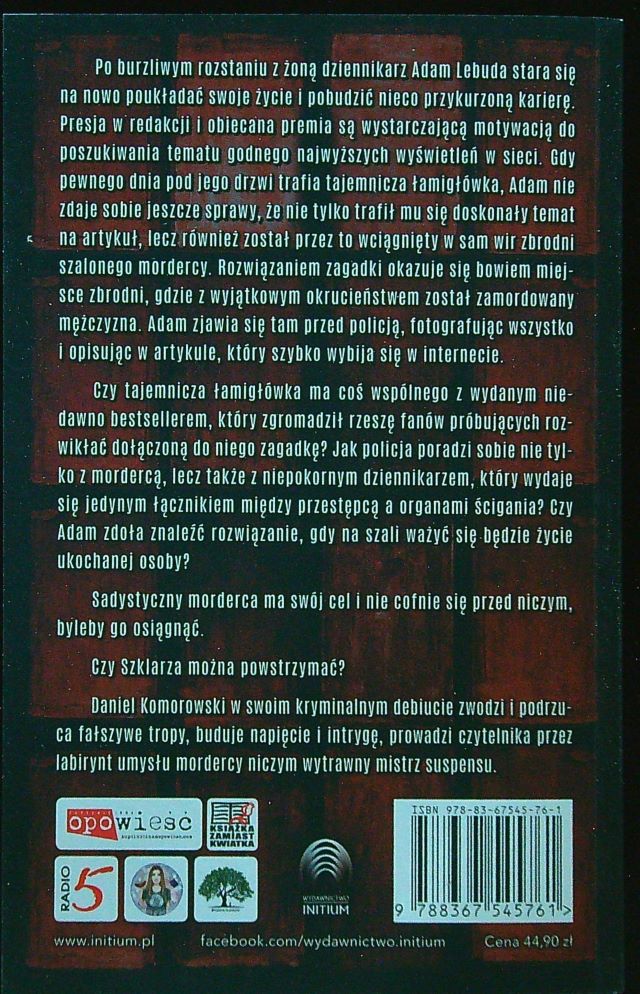 Szklarz / Daniel Komorowski. - Kraków : Wydawnictwo Initium, 2024. - 500 stron ; 20 cm.