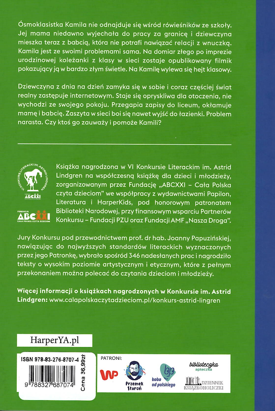 Na okładce: KSIĄŻKA NAGRODZONA V Konkurs Literacki im. Astrid Lindgren Fundacja ABC XXI Cała Polska Czyta Dzieciom.