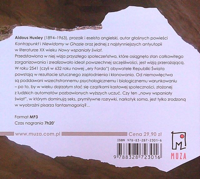 Nowy wspaniały świat / Aldous Huxley ; czyta Karolina Gruszka. - Warszawa : Muza SA, 2022. - 1 płyta CD (7 godz. 20 min) : zapis cyfrowy, stereo ; 12 cm.