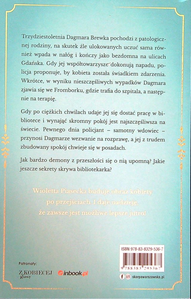 Sekret bibliotekarki / Wioletta Piasecka. - Wydanie pierwsze. - Warszawa : Skarpa Warszawska Sp.z o.o., 2024. - 301, [1] strona ; 21cm.