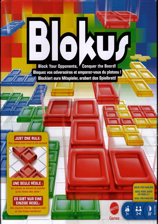 Blokus. - Mississauga : Mattel, 2023. - 1 gra (1 plansza do gry, 84 elementy w 4 kolorach) : plastik, kolor, papier ; w pudełku 4x27x27 cm + instrukcja (50, [1] strona : ilustracje ; 22 cm).