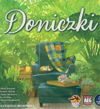 Doniczki / Molly Johnson, Robert Melvin, Aaron Mesburne, Kevin Russ, Shawn Stankewich ; ilustracje Beth Sobel ; tłumaczenie Marek Baranowski. - Kraków : Lucky Duck Games, 2022. - 1 gra (60 kart roślin, 60 kart pomieszczeń, 10 kart pomocy, 5 kart schowka, 30 kart celów, 45 żetonów przedmiotów, 36 żetonów doniczek, 45 żetonów pielęgnacji, 36 żetonów ręki do roślin, 60 drewnianych żetonów bujności, worek, notes punktacji) : papier, tektura, kolor ; w pudełku 24x24x7 cm + instrukcja (19, [1] strona : ilustracje ; 23 cm).