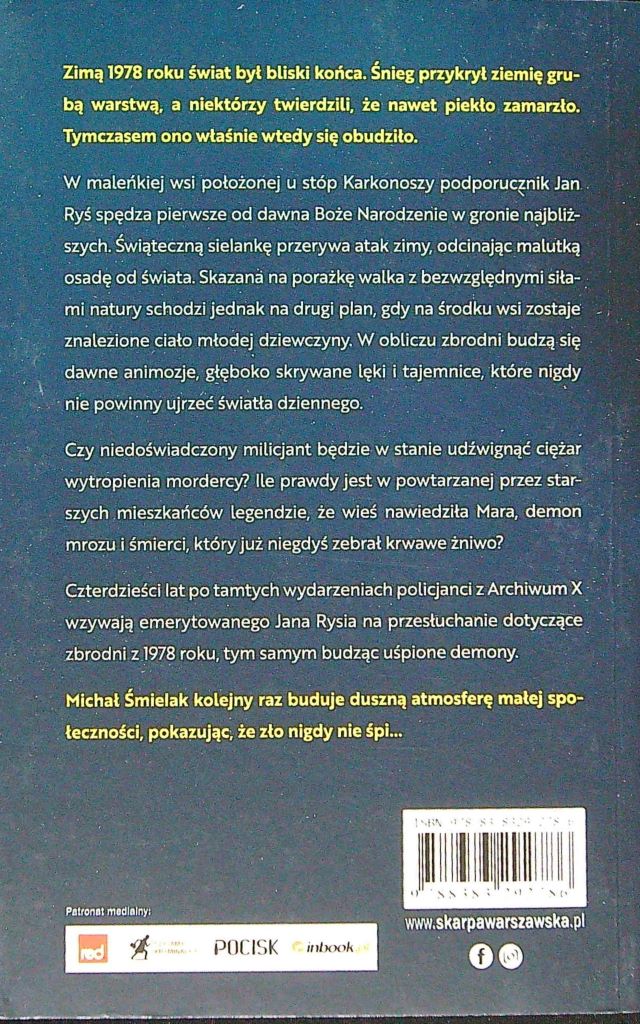 Michał Śmielak potrafi stworzyć historię, którą czyta się jak prawdziwą relację reporterską z miejsca tragicznych wypadków. Stwarza poczucie bycia bezpośrednim świadkiem zdarzeń. To duży plus powieści. Drugim zapewne jest zimowy klimat, poczucie odcięcia od świata i trudna do odgadnięcia tajemnica kto morduje. Szkoda jedynie, że to wszystko jest odmalowane w tak trupio bladym świetle ciemnej strony ludzkiej natury. I dlaczego trup ściele się aż tak gęsto? Cóż, bez tego wszak nie byłoby kryminału. I taka to już rola pisarza...