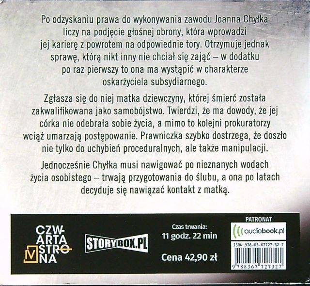 Skazanie / Remigiusz Mróz ; czyta Adam Bauman. - Poznań : Czwarta Strona - Grupa Wydawnictwa Poznańskiego sp. z o.o. ; Piaseczno : Heraclon International - Storybox.pl, 2022. - 1 płyta CD (11 godz. 22 min.) : zapis cyfrowy, stereo ; 12 cm.