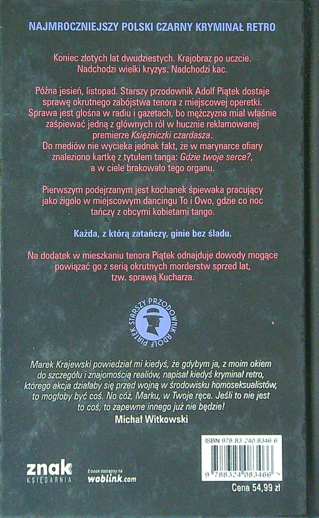 Nie powiem, czy z Tanga dobry kryminał, szczerze mówiąc, guzik mnie to obchodzi. Ta lektura to znacznie więcej niż raport o zbrodni i karze. Jeśli lubicie Michaśkową babraninę w polszczyźnie, i polskiej, tym razem dawnej, rzeczywistości, to będziecie tą książką zachwyceni.
