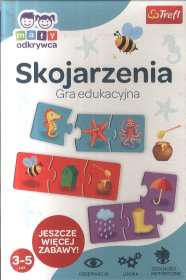 Skojarzenia : Gra edukacyjna / Monika Rutowska-Leśniewska ; ilustracje Daniel Włodarski, Iwona Murska. - Gdynia : Trefl, [2024]. - 1 gra (24 trójdzielne układanki) : tektura, kolor ; w pudełku 4x28x18 cm + instrukcja (7 stron : ilustracje ; 15 cm).