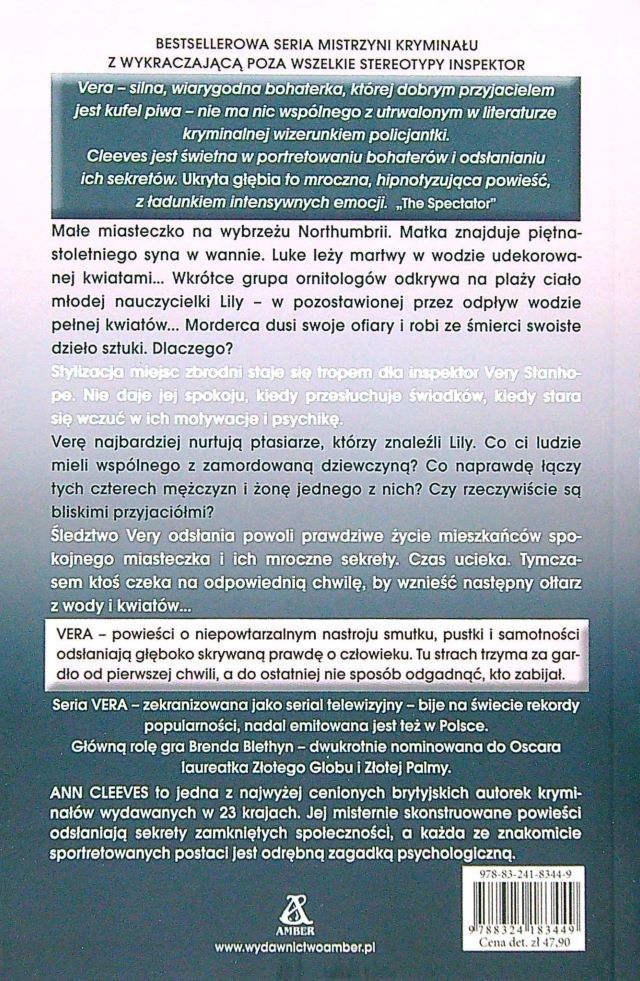 Vera niesamowita bohaterka cyklu plus niepokojąca sprawa śmierci dwóch młodych ludzi .