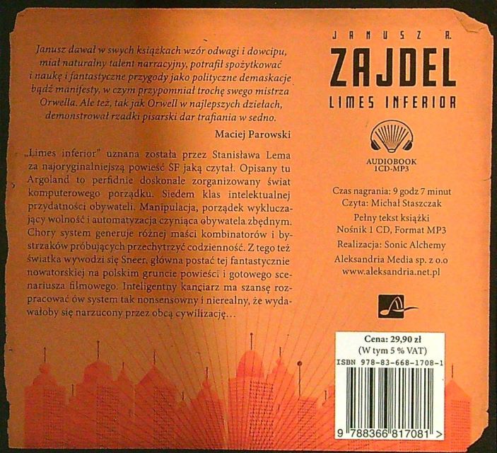Nie sposób czytając "Limes inferior" oderwać się od czasów w których powstała książka. Można odszukać wiele analogii do epoki Gierka. Autor obnażył w swojej książce tolerancje władzy dla patologii, i przestępstw popełnianych przez obywateli, ukrywanie prawdy, i nieustanną kontrolę społeczeństwa ( dzięki posiadanemu kluczowi). Nawet pokusiłabym się o stwierdzenie, że książkę można odnieść również do dzisiejszego systemu politycznego, i że Limes Inferior to jedna z tych książek po które warto sięgnąć i do których warto wracać, do czego gorąco zachęcam Marta Ciulis- Pyznar