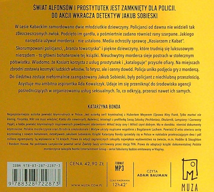 O włos / Katarzyna Bonda ; czyta Adam Bauman. - Warszawa : Warszawskie Wydawnictwo Literackie Muza SA, 2022. - 1 płyta CD (12 godz. 42 min.) : zapis cyfrowy, stereo ; 12 cm.