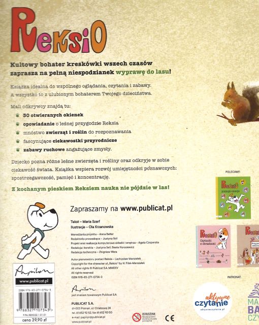 Reksio w lesie/ [tekst Maria Szarf ; ilustracje Ola Krzanowska]. - Poznań : Papilon, 2025. - [12] stron : ilustracje kolorowe ; 25 x 27 cm.