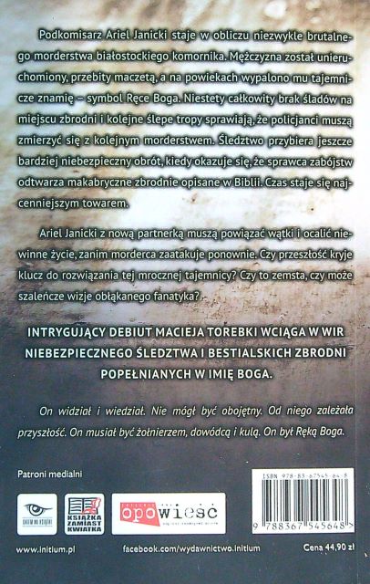 Ręce Boga / Maciej Torebko. - Kraków : Wydawnictwo Initium, 2024. - 399, [1] strona ; 20 cm.