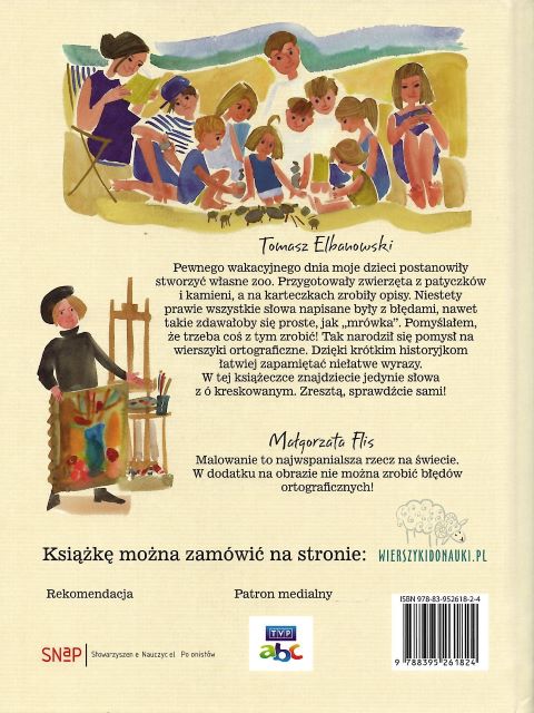 Ortografia w wierszykach Ó / Tomasz Elbanowski ; ilustracje Małgorzata Flis. - Wydanie V. - Warszawa : Wydawnictwo Tabula Rasa, 2024. - 81, [3] strony : ilustracje ; 22 cm.