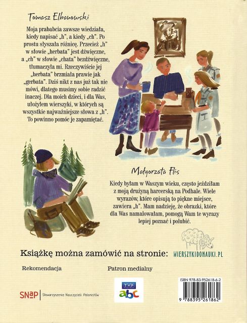 Ortografia w wierszykach H / Tomasz Elbanowski ; ilustracje Małgorzata Flis. - Wydanie III. - Warszawa : Wydawnictwo Tabula Rasa, 2023. - 80, [4] strony : ilustracje ; 22 cm.