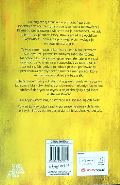 Trzeba sięgnąć po trylogię tej Autorki - o komisarzu Wilczyńskim i poznanej Tu dziennikarce Larysie 👍 Polecam do lektury fotelowej lub kanapowej 😉