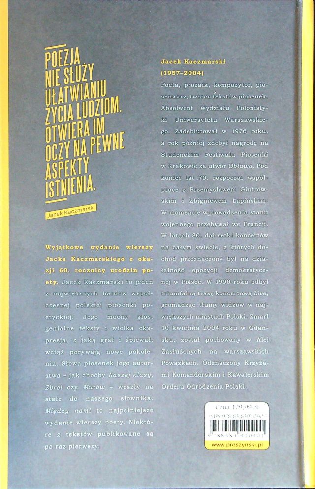 Między nami : wiersze zebrane / Jacek Kaczmarski. - Wydanie drugie poszerzone. - Warszawa : Prószyński Media Sp. z o.o., 2017. - 1142 strony ; 24 cm.