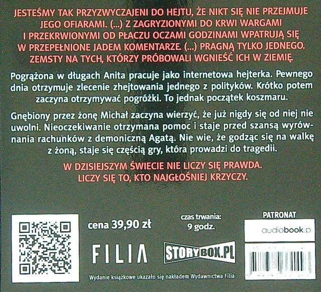 Nie było tutaj momentu, aby akcja, chociaż odrobinę zwolniła, czy stała w miejscu. Tu nie było miejsca na nudę. Autor porusza trudne tematy, bo o przemocy fizycznej i psychicznej, hejcie w Internecie, (...) samotności, zdradzie, pandemii, gwałtach i wiele innych, które momentami wywołują ciarki na skórze.