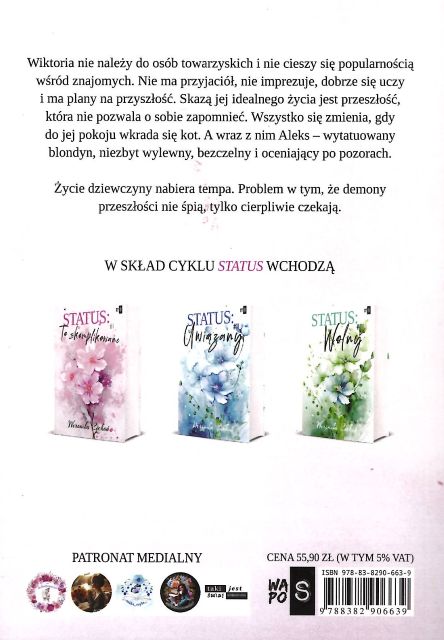 Status. T.1, To skomplikowane / Weronika Cichoń. - Wydanie II. - Warszawa : WasPos ; 2025. - 440, [4] strony ; 21 cm.