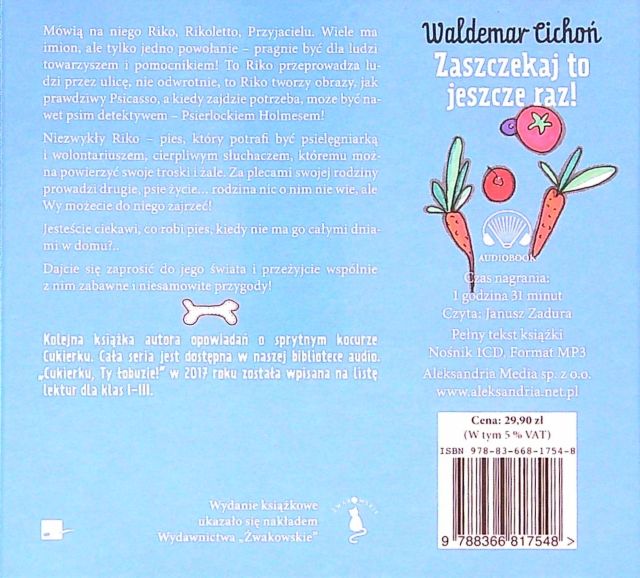 Zaszczekaj to jeszcze raz! / Waldemar Cichoń ; czyta Janusz Zadura. - Katowice : Aleksandria Media Sp. z o.o., 2022. - 1 płyta audio CD (1 godz. 31 min) : digital, stereo ; 12 cm.