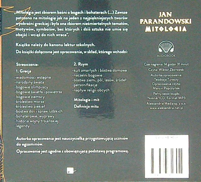 Mitologia / Jan Parandowski ; czyta Wiktor Zborowski. - Katowice : Aleksandria Media Sp. z o.o., 2023. - 1 płyta audio (CD) (14 godz. 31 min) : zapis cyfrowy, stereo. ; 12 cm.