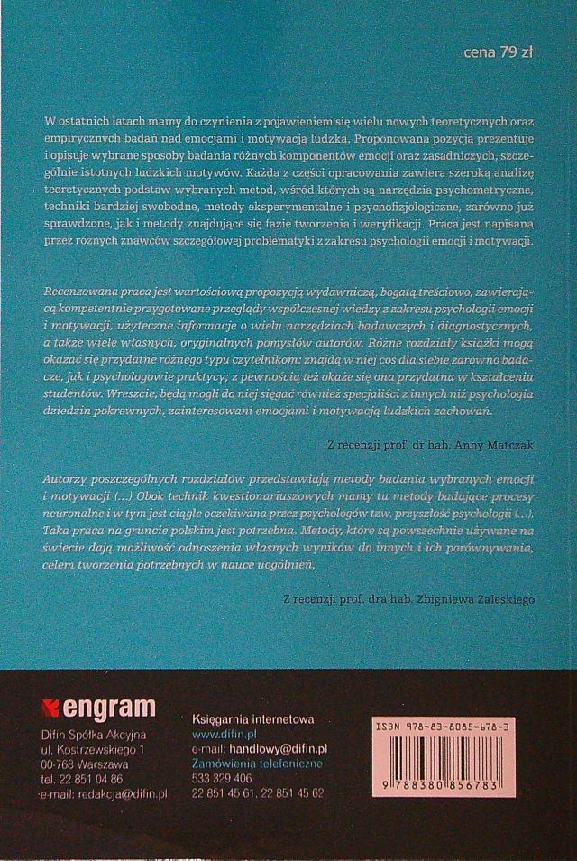 Metody badania emocji i motywacji / redakcja naukowa Henryk Gasiul. - Warszawa : Difin SA, 2018. - 392, [1] strona : ilustracje, fotografie, wykresy ; 23 cm.