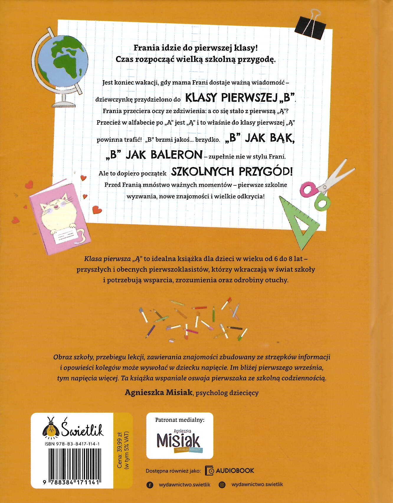 Klasa pierwsza Ą / Barbara Supeł ; ilustracje Agata Dobkowska. - Wydanie I. - Białystok : Świetlik, 2025. - 84, [5] stron : ilustracje ; 26 cm.