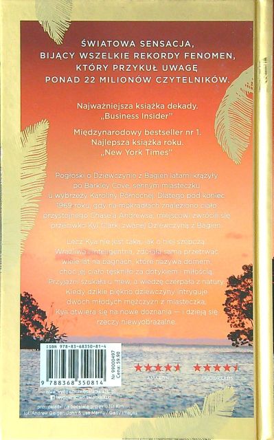(...)a zwłaszcza ptakom, które ją fascynują. Odkrywa w sobie artystyczną, wrażliwą duszę. Z czasem, gdy dorośnie przekona się, że miłość może mieć różne oblicza i potrafi boleśnie ranić. To jedna część powieści. Druga ma wątek kryminalny. O śmierć młodego chłopaka, którego zwłoki znaleziono pod wieżą obserwacyjną na bagnach zostaje oskarżona właśnie Kya, która była z nim widywana. Ława przysięgłych musi rozpatrzyć w sądzie czy poszlaki wiodące do Dziewczyny z Bagien są uzasadnione, czy raczej powstały na bazie uprzedzeń ludzi z miasteczka. Powieść wciąga i przez swoją niejako dwuwątkowość nie pozwala oderwać się od lektury. To plus. Kontrowersyjna zaś jest sama bohaterka, której jako małej dziewczynce zaczynamy kibicować i serdecznie współczuć, ale później, gdy dorasta na młodą dziewczynę coraz trudniej zrozumieć nam jej postępowanie i obsesyjną izolację od ludzi, którzy chcą jej pomóc. Książka jest jednak piękną opowieścią o ludziach oswojonych, zaprzyjaźnionych wręcz z dziką przyrodą, żyjących według własnych, przez nikogo nie narzucanych reguł. I choć to fikcja, to któż z czytelników tej książki nie chciałby choć raz o zachodzie słońca tańczyć na boso z mewami na plaży i wsłuchiwać się w rytm bicia własnego serca zgrany z rytmem uderzających o brzeg fal morskich...