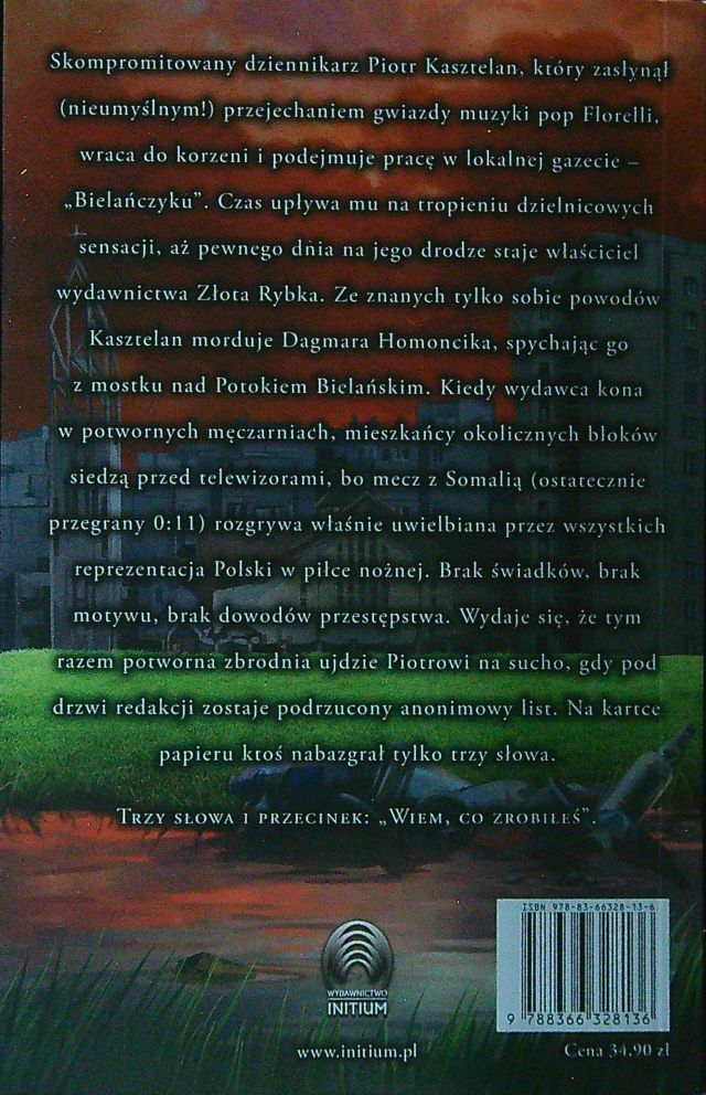 Akcja dotyczy głównie morderstwa, a dokładniej odkrycia, kto szantażuje Piotra Kasztelana. Okazuje się bowiem, że ktoś wie, czego dokonał dziennikarz. Mężczyzna nie tylko stara się jakoś poradzić z tym nieprzewidzianym problemem, lecz także jednocześnie pracuje w gazecie, udając, że nic się nie wydarzyło. Kasztelan rozmawia z ludźmi przy okazji różnych wydarzeń, odkrywa wtedy, że nikt nie znosił denata. Wychodzi na to, że Piotr przysłużył się społeczeństwu, jednak szantaż wskazuje na coś innego.