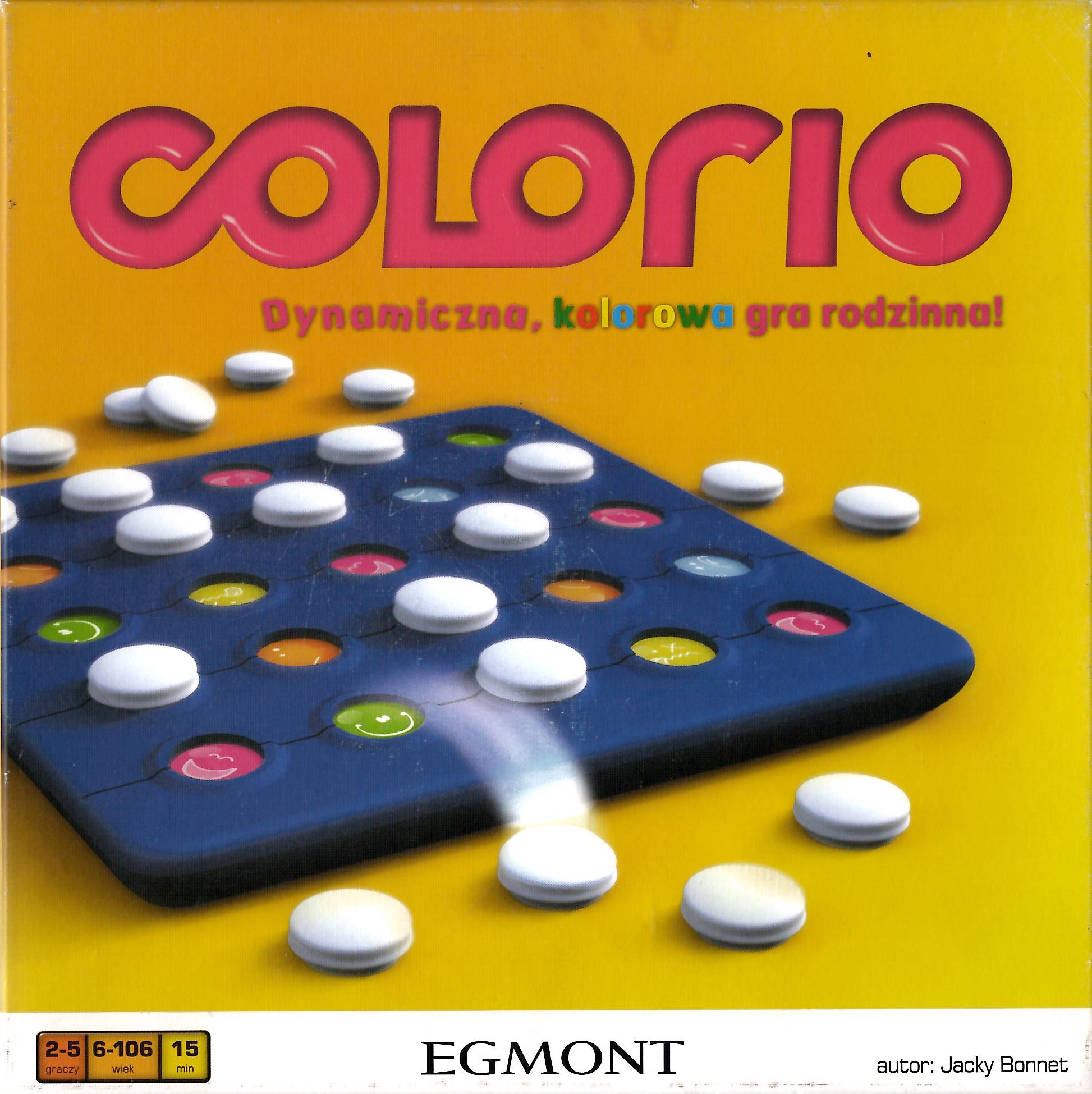 Colorio : dynamiczna kolorowa gra rodzinna!/ Jacky Bonnet ; tłumaczenie Alek Pala. - Warszawa : Egmont Polska, 2012. - 1 gra (1 plansza, 25 korków, 5 pasków) : plastik, karton, kolor ; w pudełku 6x25x25 cm +instrukcja (2 strony : ilustracje ; 24 cm).).