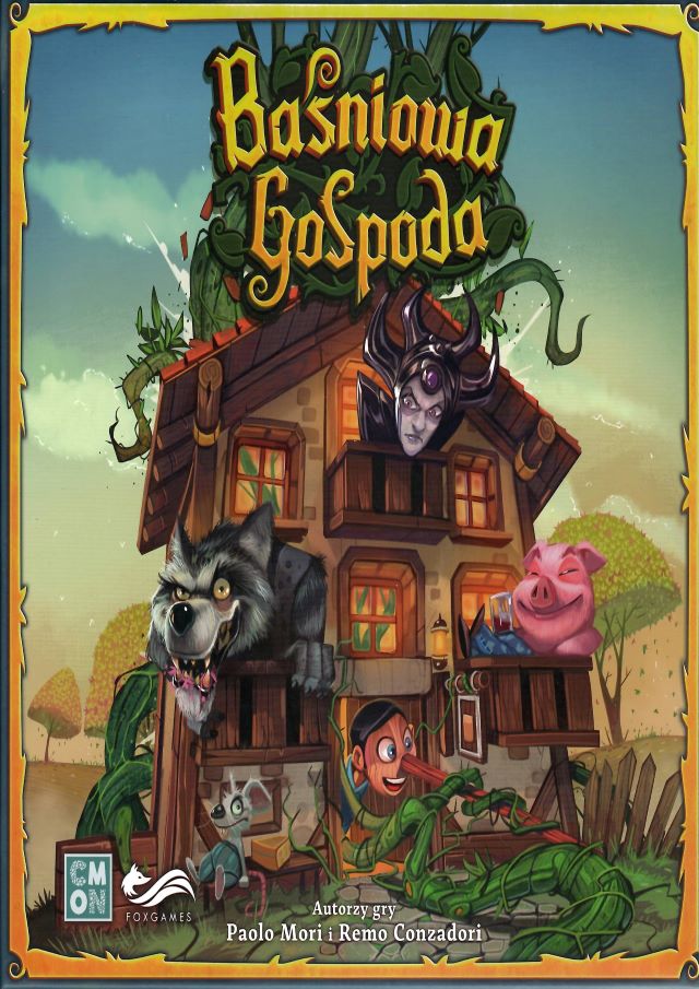 Baśniowa gospoda / Paolo Mori, Remo Conzadori ; ilustracje Davide Tosello ; tłumaczenie Michał Szewczyk. - Warszawa : Foxgames - Grupa Wydawnicza Foksal, 2021. - 1 gra (1 gospoda, 8 kart postaci, 1 plansza z listą gości, 62 złote monety, 1 woreczek, 64 żetony postaci) : karton, papier, plastik, kolor ; w pudełku 28x28x9 cm + instrukcja ([4] strony : ilustracje ; 25 cm).
