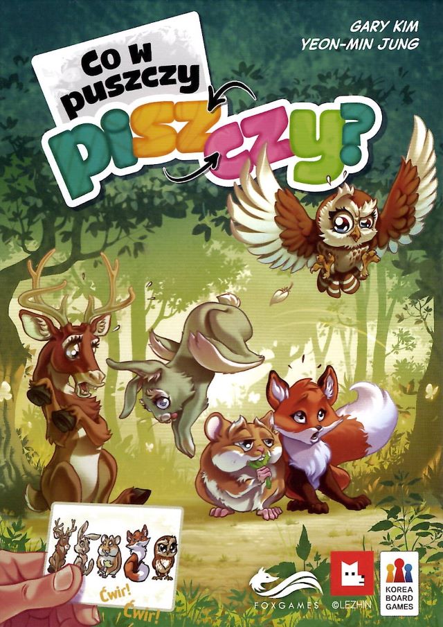 Co w puszczy piszczy? / Gary Kim, Yeon-Min Jung ; ilustracje Cyrille Bertin. - Warszawa : Foxgames - Grupa Wydawnicza Foksal, 2023. - 1 gra (15 kafelków zwierząt, 1 kafelek liścia, 27 kart celów, 12 kart dźwięków, 1 podstawka) : karton, plastik, kolor ; w pudełku 4x13x18 cm + instrukcja ([2] strony : ilustracje ; 17 cm).