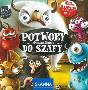 Potwory do szafy/ Antoine Bauza ; ilustracje Maciej Szymanowicz. - Gdańsk : Granna, 2013. - 1 gra (20 kart potworów, 10 żetonów zabawek, 3 części potwora Zębogona, 2 żetony Łowców Doskonałych, szafa) : karton, tektura, kolor ; w pudełku 4x19x19 cm + instrukcja (8 stron ; ilustracje ; 15 cm).
