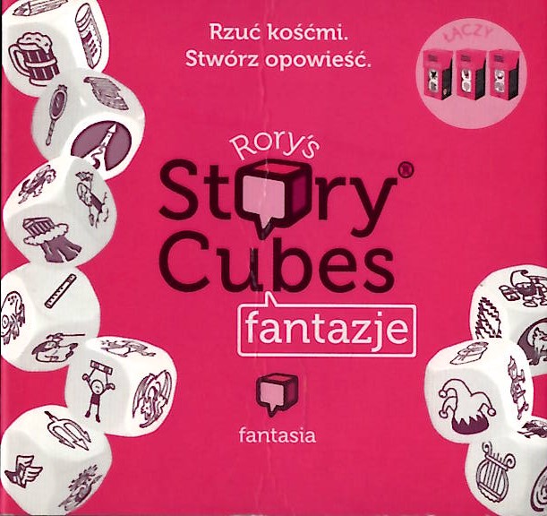 Story Cubes : fantazje. - Gdańsk : Rebel Centrum Gier, 2016. - 1 gra (9 kostek): karton, plastik, kolor ; w pudełku 8x8x3 cm + instrukcja (8 stron : ilustracje ; 5 cm).
