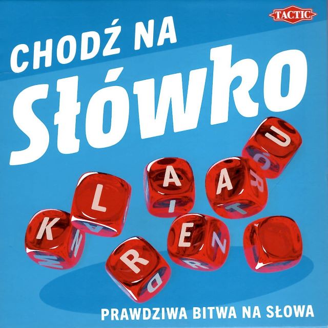Chodź na słówko : prawdziwa bitwa na słowa. - Pori : Tactic Games Oy, 2023. - 1 gra (7 kostek z literami + jedna pusta kostka, 1 notatnik, 1 klepsydra, 4 ołówki) : plastik, drewno, kolor ; w pudełku 7x16x16 cm + instrukcja.
