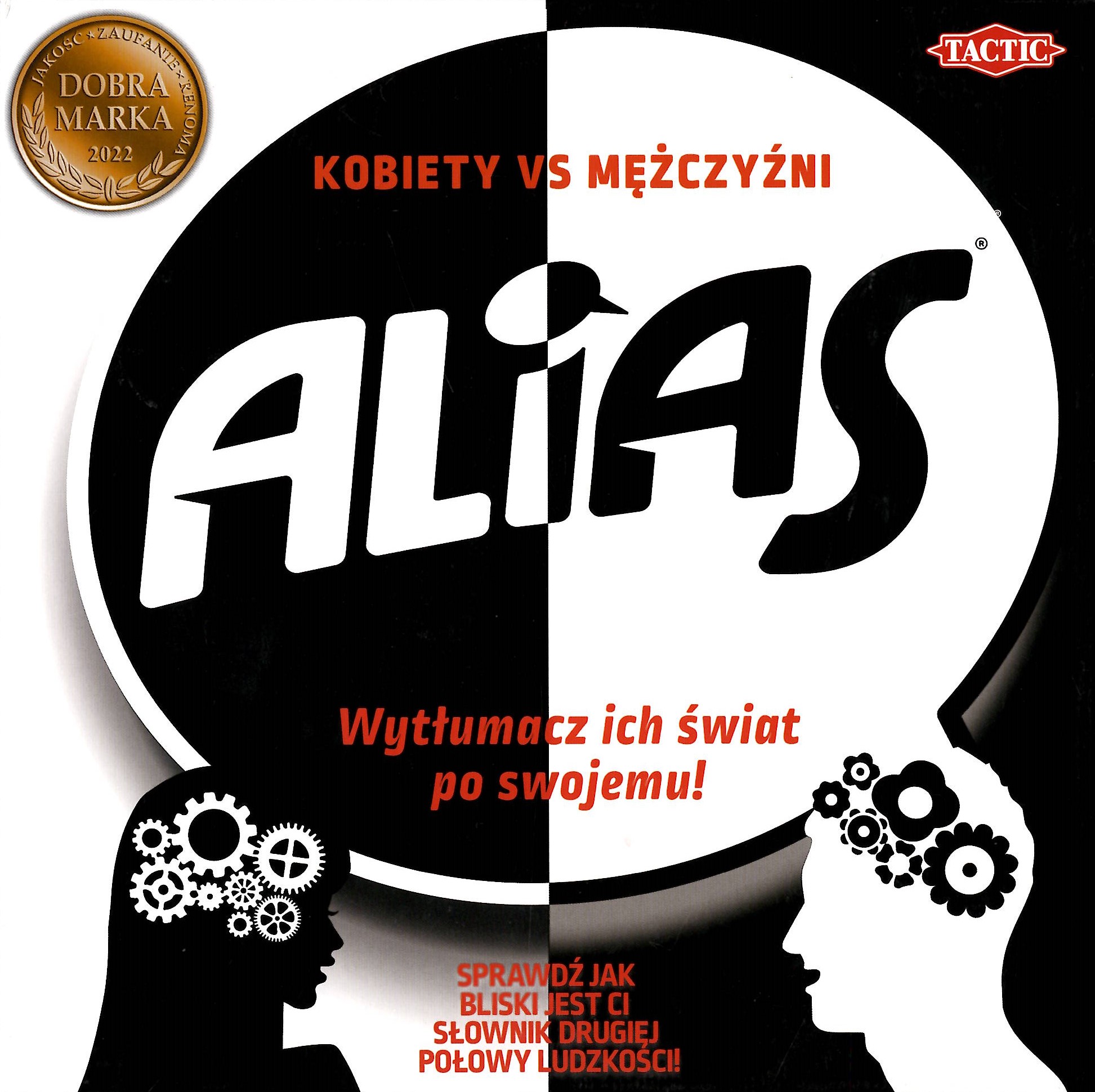 Alias : kobiety vs mężczyźni. - Pori : Tactic Games Oy, 2020. - 1 gra (1 plansza, 400 kart, klepsydra, 2 pionki) : karton, plastik, tektura ; w pudełku 25x25x6 cm+ instrukcja (2 strony : ilustracje ; 23 cm).