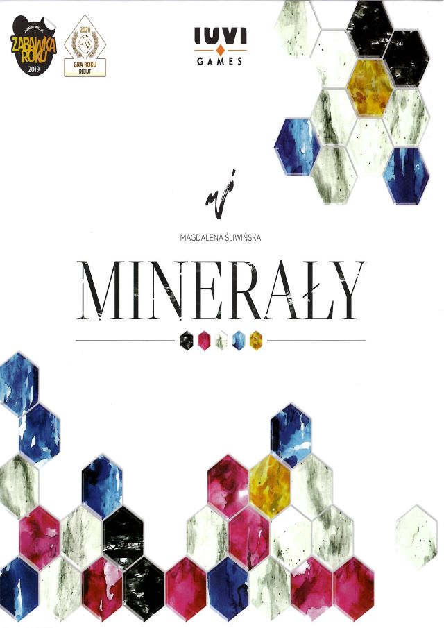 Minerały / Magdalena Śliwińska. - Kraków : Wydawnictwo IUVI, 2019. - 1 gra (118 akrylowych kafli minerałów, 24 karty kolekcji, 5 silikonowych pionków, 5 planszetek, 5 dwustronnych kafli narzędzi, 1 sakiewka) : karton, tektura, kolor ; w pudełku 30x30x7 cm + instrukcja (7 [1] strona : ilustracje ; 28 cm).